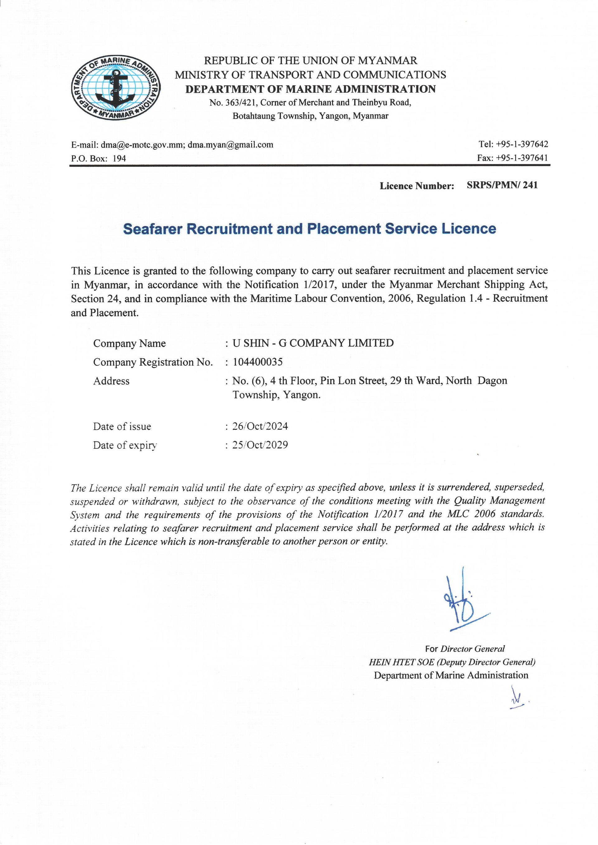 In 2018, USHIN-G was founded by Capt. Min San and Capt. Than Naing Win. We recruit, train and provide Loyal, competent and high-quality pool crew with high retention rates to our partner Ship Owners and Ship Managers. We give one stop service to provide sincere solution to our clients’ needs.